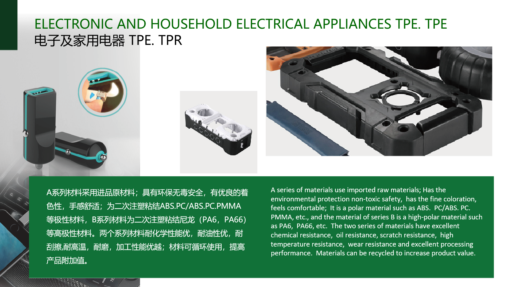 1.TPE與硬質(zhì)材料PP.ABS.PC.PA等材料的相容性,且分子溶解度接近,因此TPE與硬膠的相容性才會(huì)比較好。